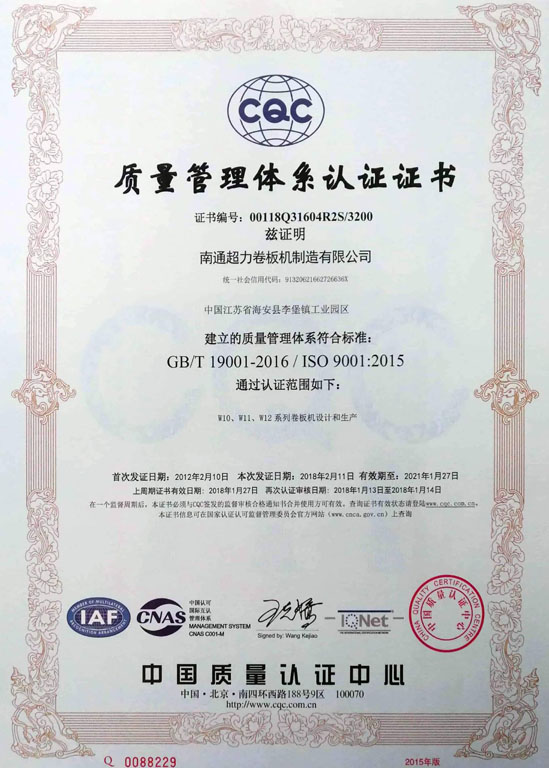 四、自動二輥卷板機為我公司生產(chǎn)的高新技術(shù)產(chǎn)品(證書編號:110621G0533N),榮獲南通市科學進步獎。其下輥為鋼輥,上輥為鋼輥芯外包彈性層,板材置于兩輥間并調(diào)整其間距,使其接觸——加壓——膠輥變形,板材隨之局部變形,驅(qū)動兩輥旋轉(zhuǎn),使板材連續(xù)彎卷成型。