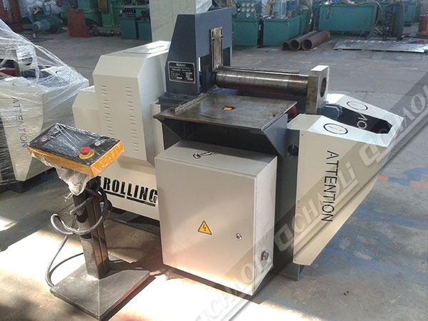 二輥卷板機(jī)其一輥為鋼輥,另一輥為鋼輥芯外包彈性層,板材置于兩輥間并調(diào)整其間距,使其接觸——加壓——膠輥?zhàn)冃危宀碾S之局部變形,驅(qū)動(dòng)兩輥旋轉(zhuǎn),使板材連續(xù)彎卷成型。板料一次卷制即可加工成型,無(wú)明顯直邊,卷圓精度高。是高效、高精度、高度自動(dòng)化的卷板加工設(shè)備。